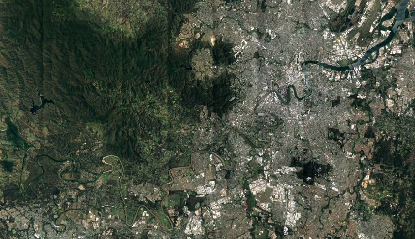 “According to many Brisbane Aboriginal families, the Brisbane River was once much narrower. It gained its current shape when the Dreaming Rainbow Serpent (also known as Carpet Snake, Eel, or Bunyip) slithered down from the Great Divide and along the Brisbane valley to lay its eggs, gouging out the current course. In some versions of the story, the Snake is chased by Goanna. The gigantic snake track became the river, with water tumbling on after the Dreaming-Ancestor. The walls of the giant snake track are the cliffs along Kangaroo Point, Petrie’s Bight, and elsewhere. Eventually, the Dreaming Serpent reached Moreton Bay, where its eggs became the people and the animals.”