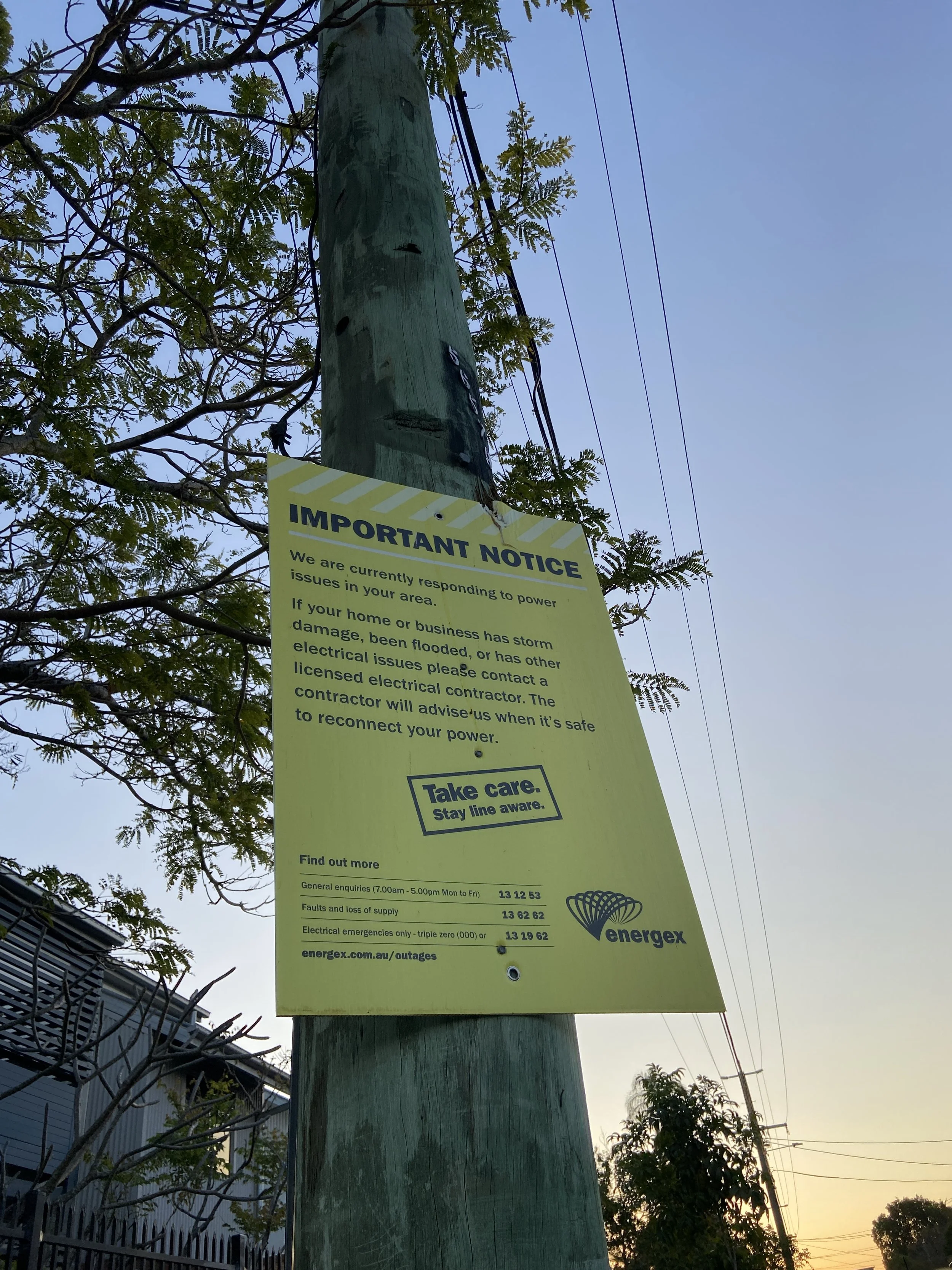 The 2022 floods damaged many Energex power transformers located on low-lying land in West End. They were subsequently replaced with pole-mounted transformers. In some areas, the power was shut off at short notice for safety reasons. This meant some apartment residents were unable to relocate their elevators to higher levels or operate electric gates to move cars out of basements before floodwaters arrived. Some residents were without power for a month after the flood. Body corporates had to organise petrol generators to power essential services like elevators.