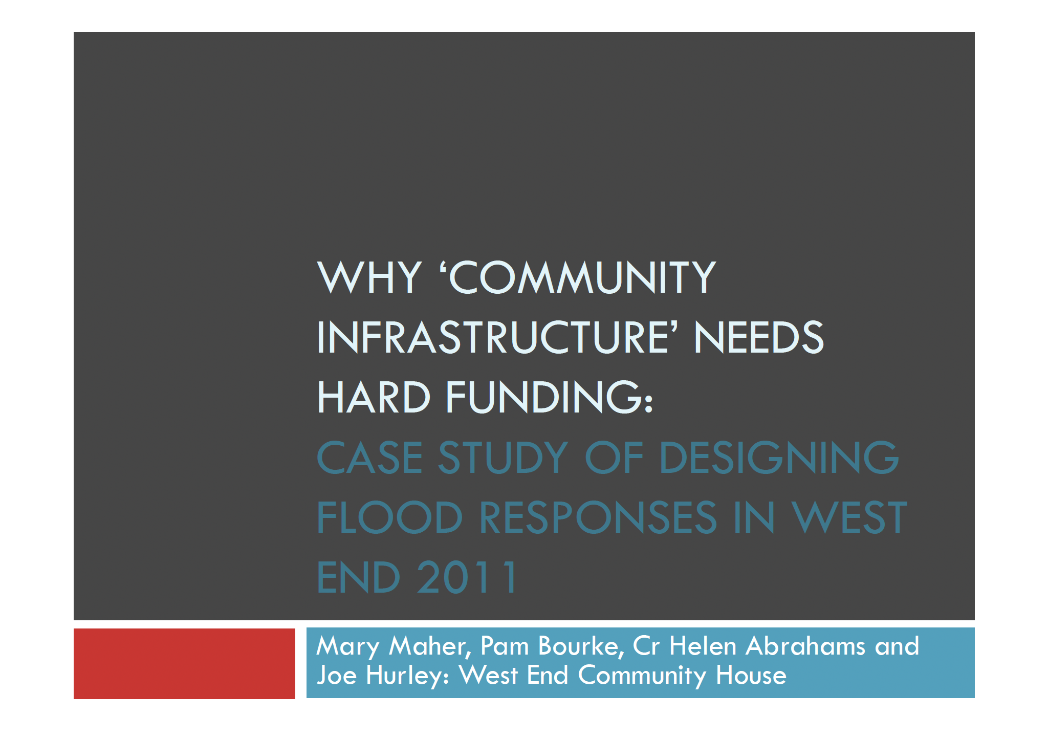 Why 'Community Infrastructure' Needs Hard Funding: Case Study of Designing Flood Responses in West End 2011