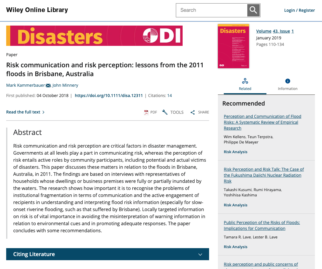 Risk communication and risk perception: lessons from the 2011 floods in Brisbane, Australia